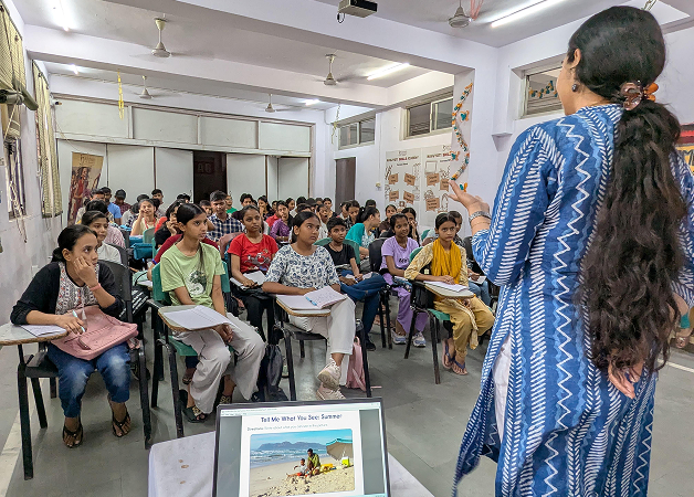 The 40-hour English Speaking Course under Navjyoti India Foundation’s Skill Upgradation Program aims to build participants’ confidence in English communication. The program begins with greetings, introductions, and the basics of pronouns, articles, prepositions, and determiners. It progresses to sentence structure, vocabulary, and distinctions between singular/plural and different persons (1st, 2nd, 3rd). The course also emphasizes the use of WH-questions, parts of speech, and tenses, alongside an introduction to modals